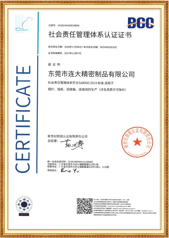 Passed ISO9001, ISO14001, IATF16949, SA8000, ISO45001 certification.